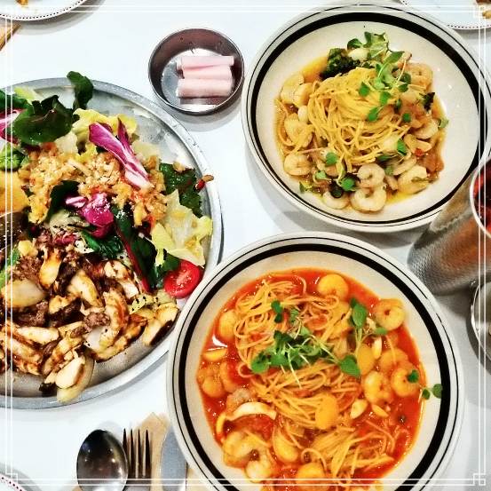 제천 여행 가면 꼭 먹어봐야겠다고 생각했던 스테이크 샐러드 랑 시금치 크림 파스타입니다.맛있습니다. 다른 곳과 다른 특별한 맛은 신선한, 좋은 재료에서 오는 것일까요? ~ ^^ 스테이크 샐러드는 입에서 살살 녹을정도로 부드러우면소 쫜득한 느낌? 뭔가 식감이 특이했어요. 대기는 제가 갔을 때는 없었어요! 금방음식이나와요.!~ ^^