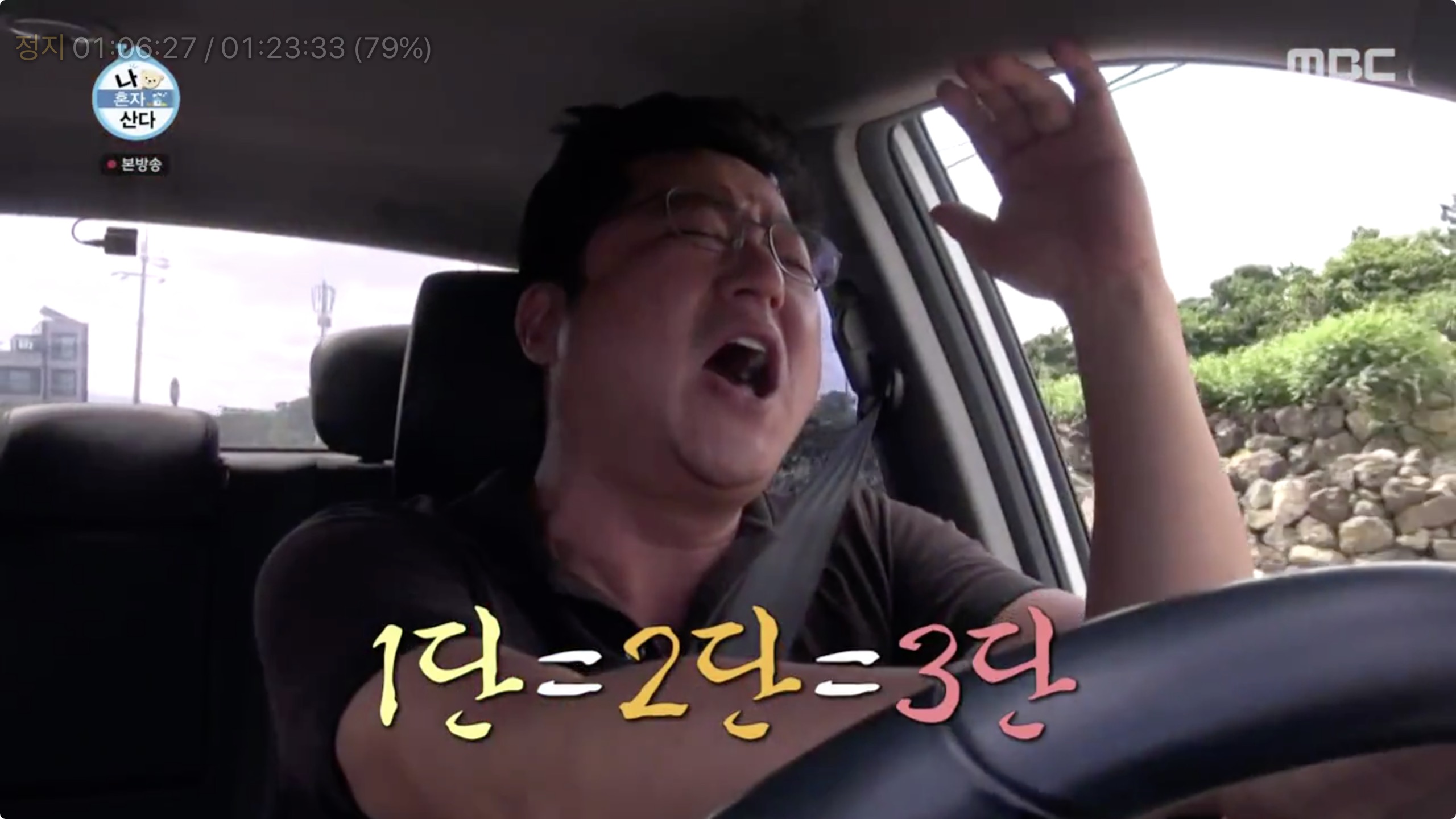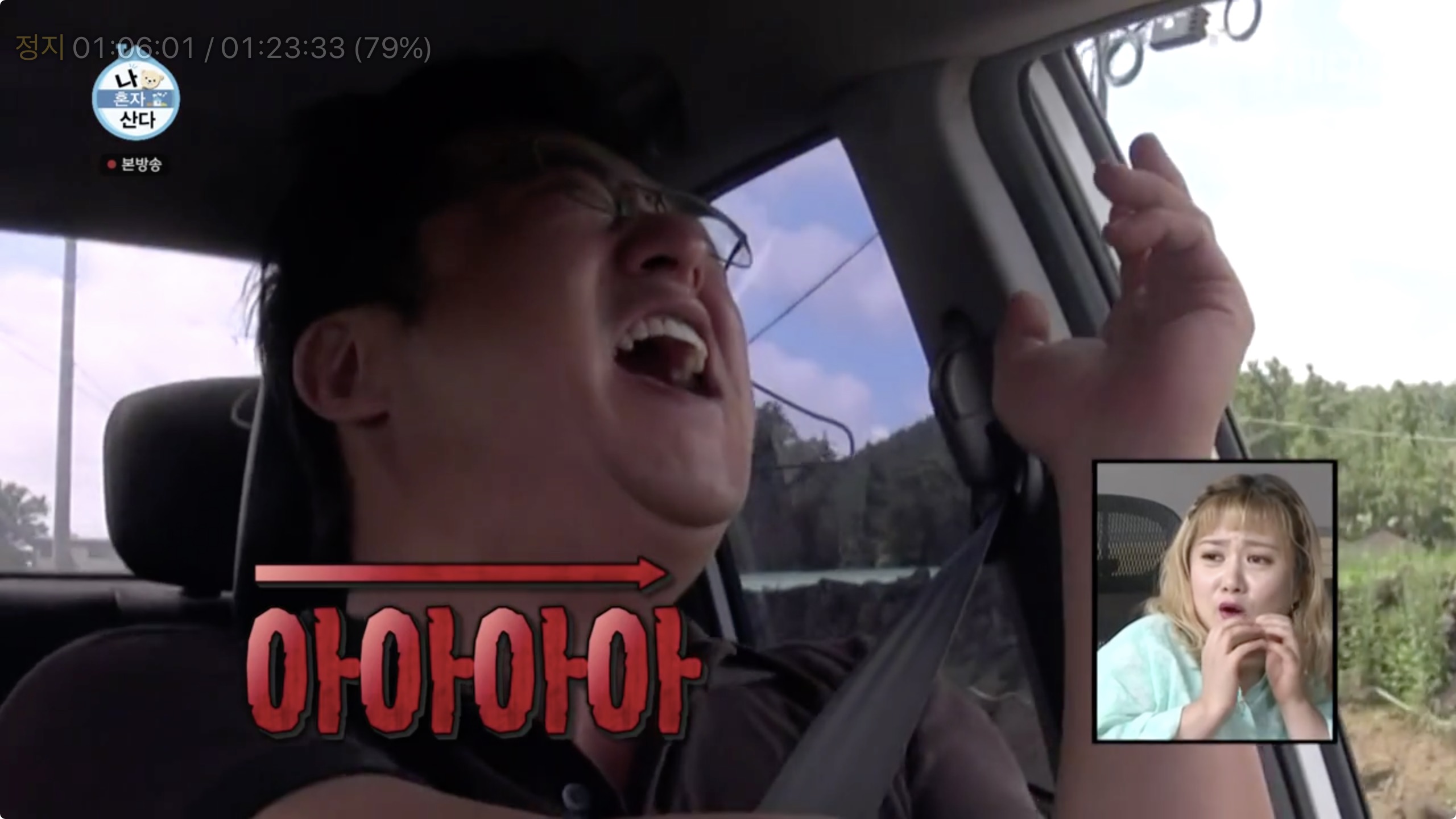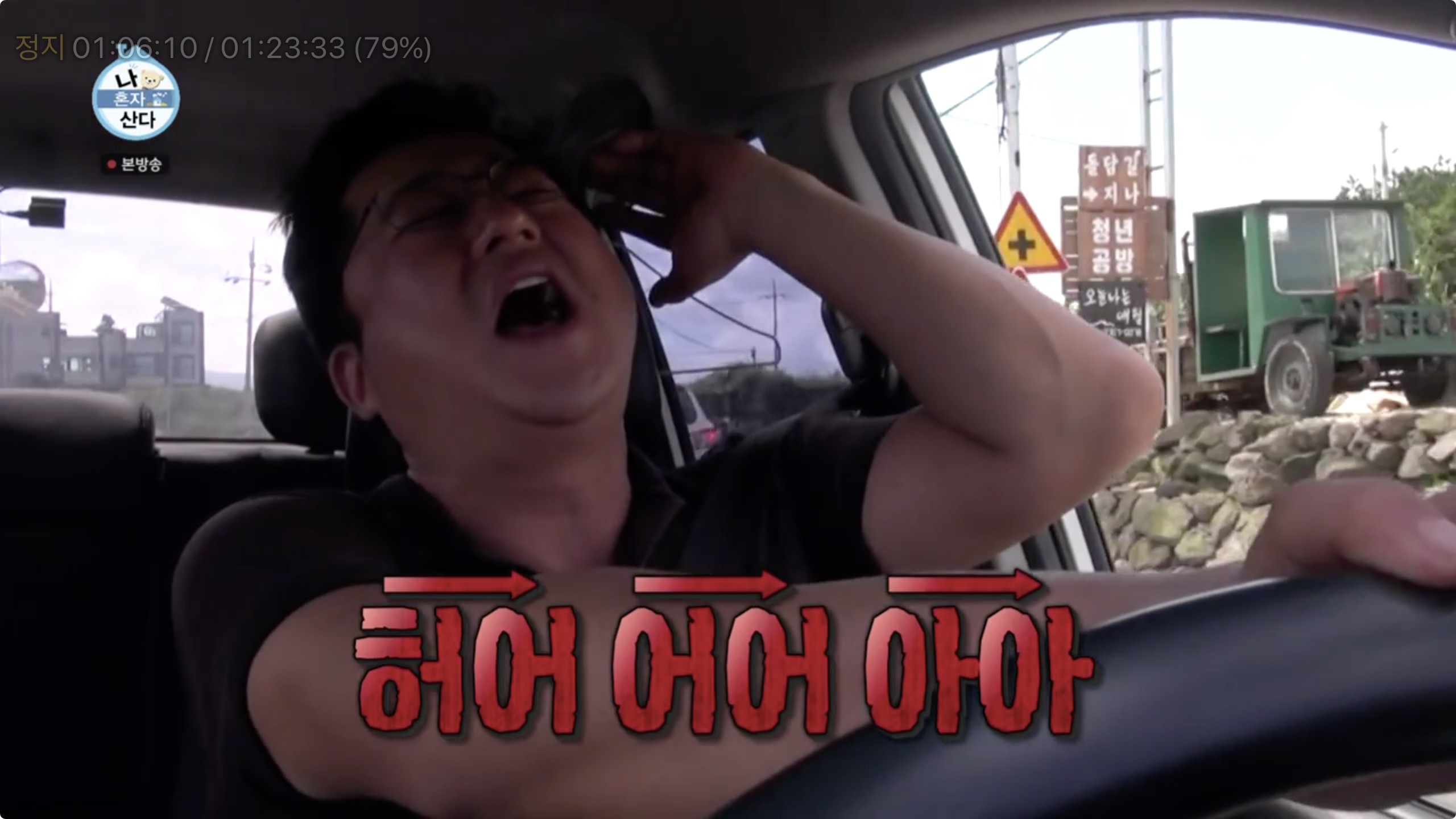 곽도원은 예초기를 빌리기 위해 이웃집으로 향하는 차 안에서 또 다시 폭발적인 코창력을 자랑했답니다.