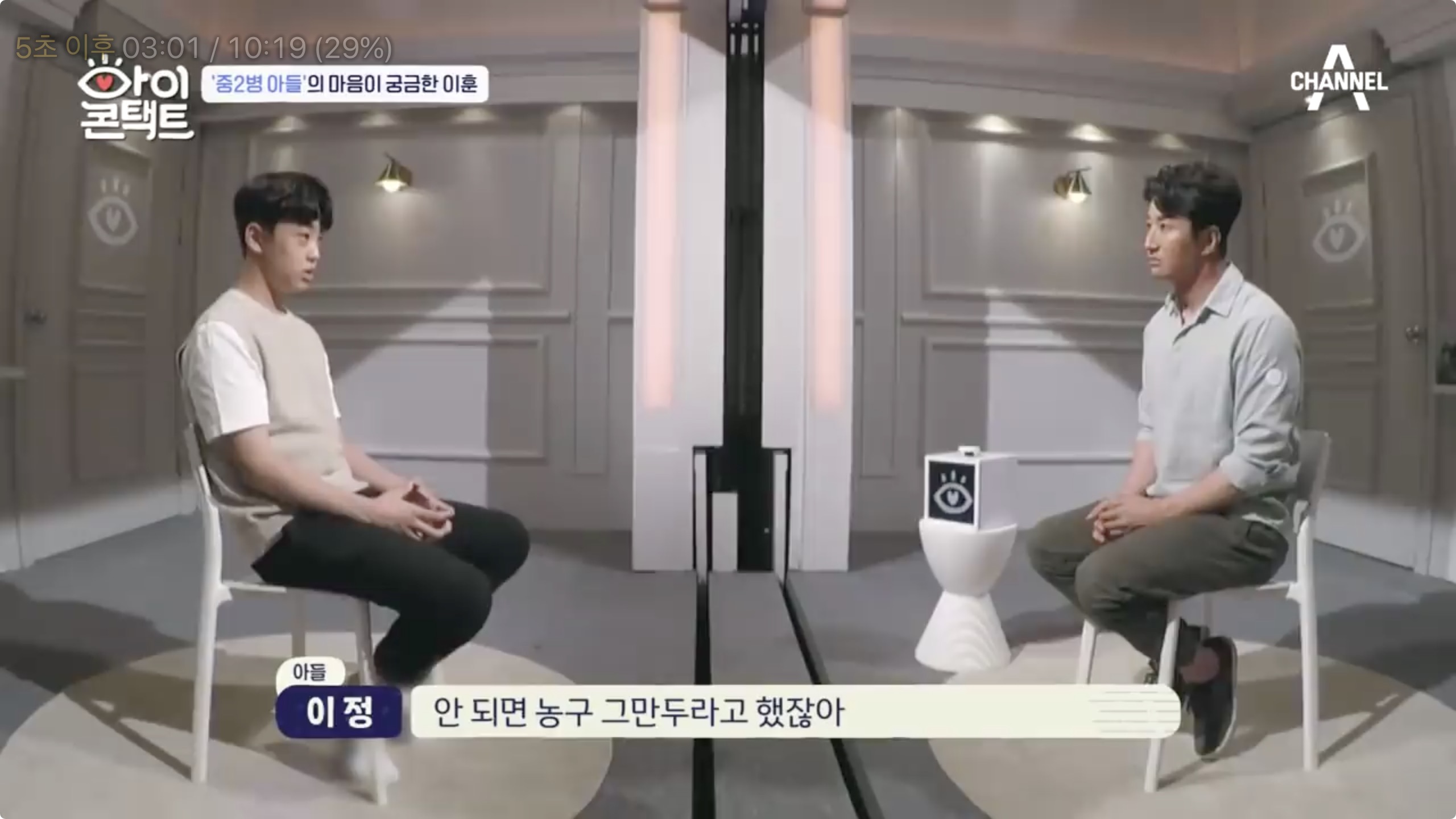 마침내 이훈은 어색한 분위기에서 아들 이정과 대면했고, "우리가 왜 여기까지 온 것 같아?"라고 물었습니다.