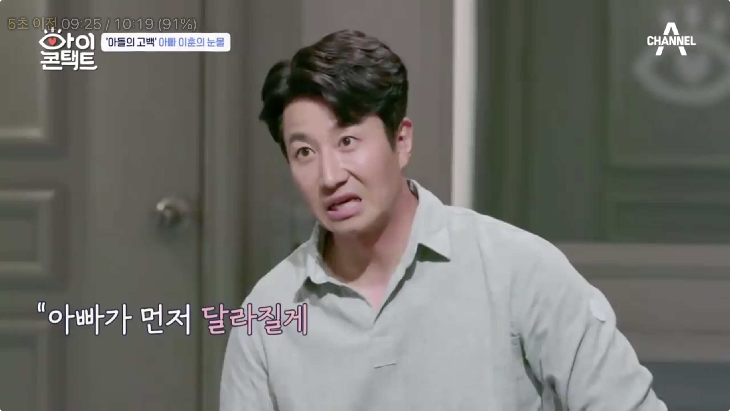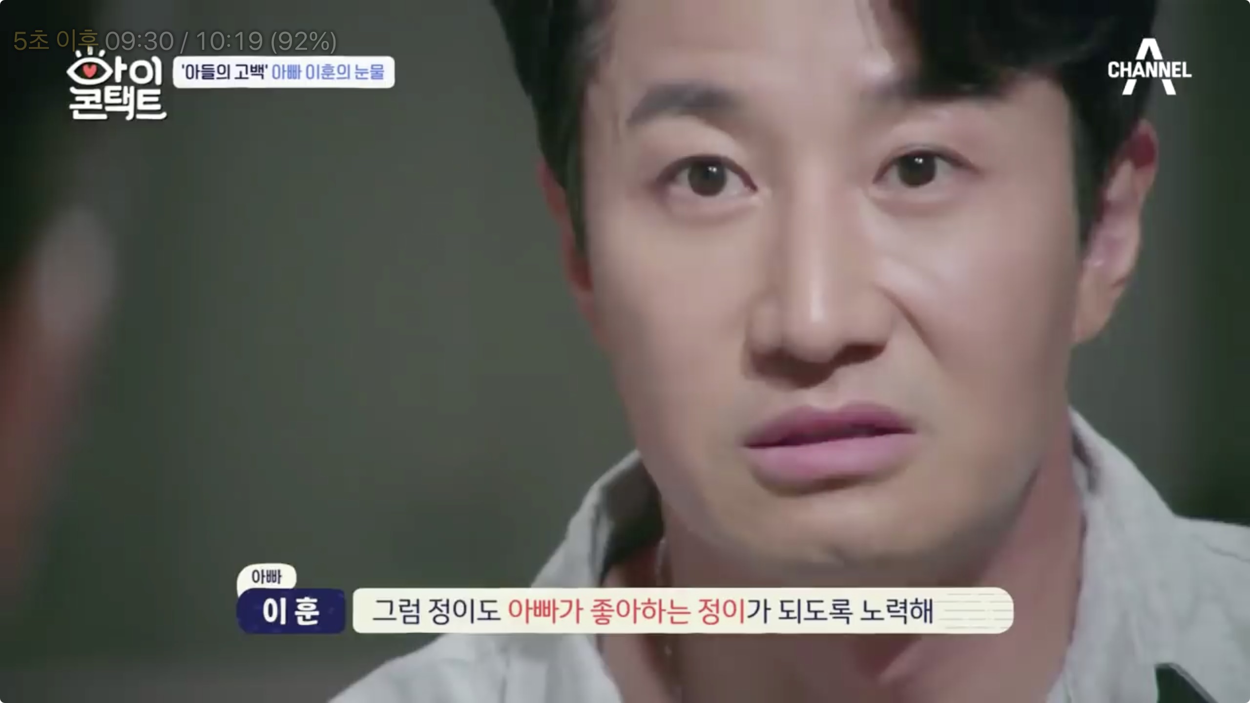 하지만 눈맞춤 이후 이훈이 "아빠는 너 태어나서 지금까지 자라온 과정이 싹 지나가더라"라고 말하자 이정은 감정이 북받친 듯 흐느꼈고, 이훈도 눈물을 억지로 참았다.