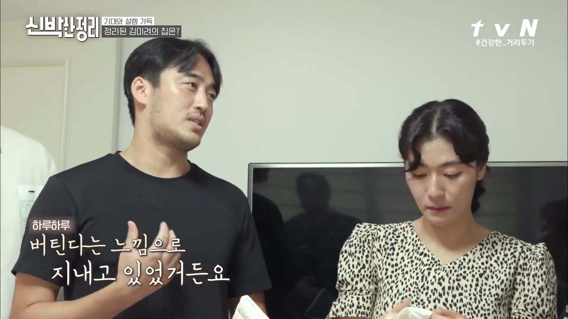 정리된 집이 공개되는 날 김미려, 정성윤 부부는 "웬만하면 상상이 되는데 진짜 상상이 안 된다"며 기대감을 드러냈습니다. 특히 신박한 정리가 된 집 공개를 앞두고 정성윤은 "어떻게든 해보려고 노력을 했지만, 한계를 넘어선 집이다"며 기대만큼이나 긴장한 모습도 보였습니다.