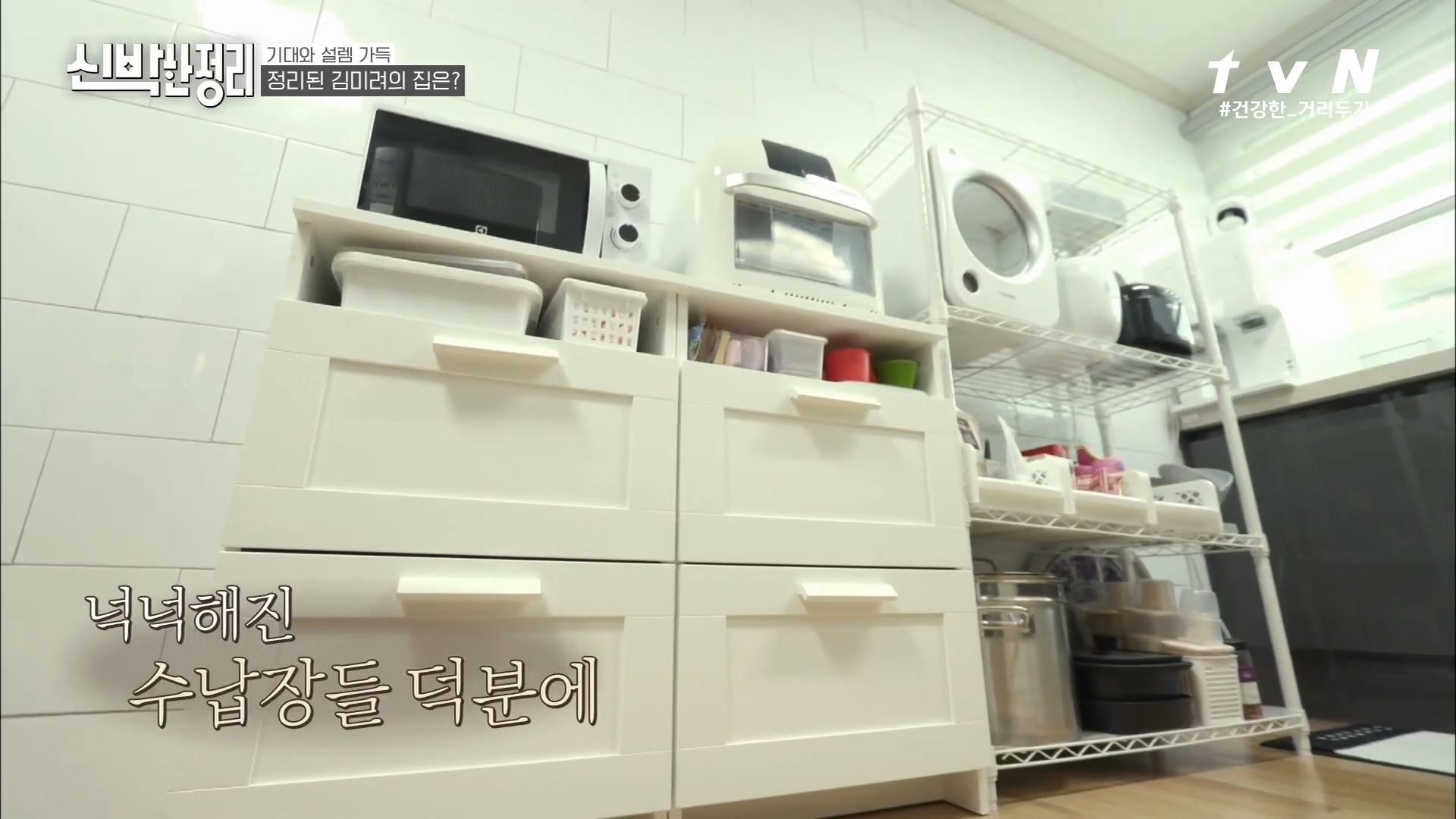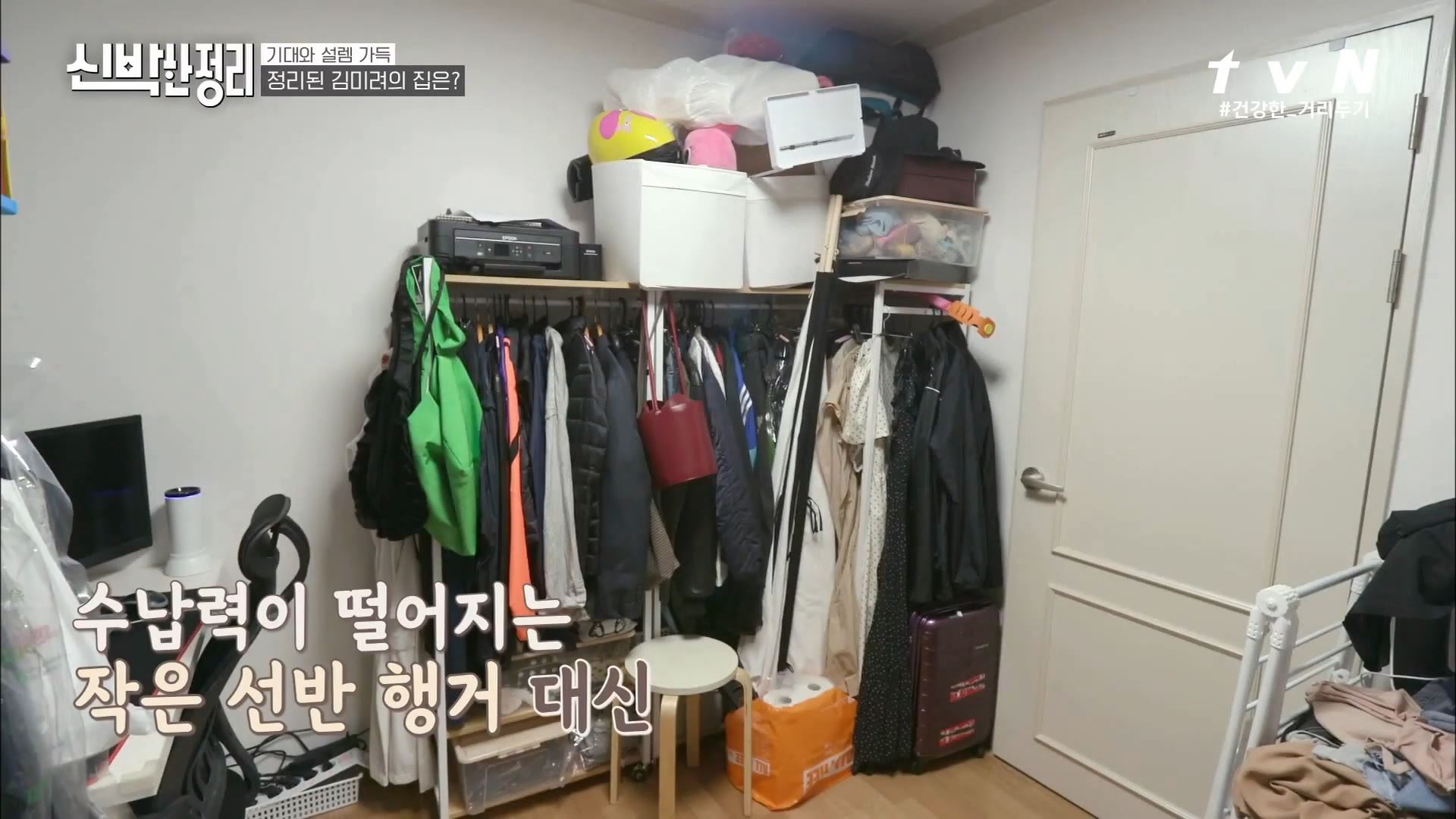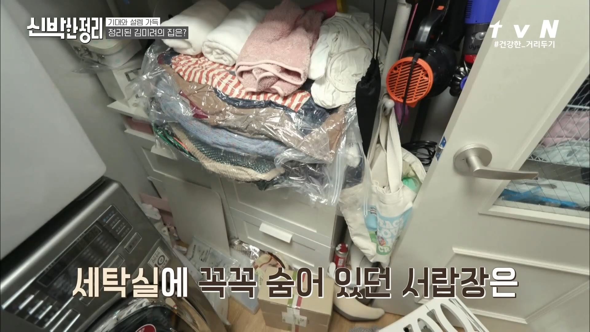 이어 김미려는 퇴근 후에도 살림에 서툰 남편의 뒷정리를 하느라 제대로 쉬지 못하는 모습으로 안타까운 모습을 더했습니다. 이에 신애라와 박나래, 윤균상이 본격적으로 공간 점검에 나서게 되었습니다! 김미려, 정성윤의 집은 전반적으로 수납이 부족하다는 게 큰 문제점이었습니다.