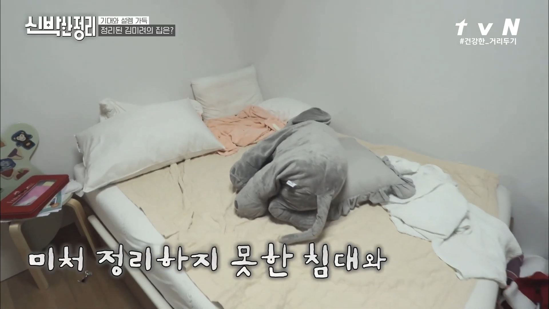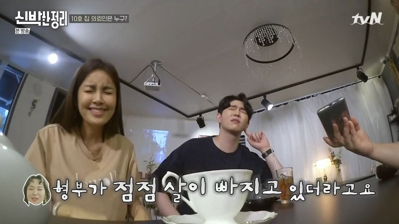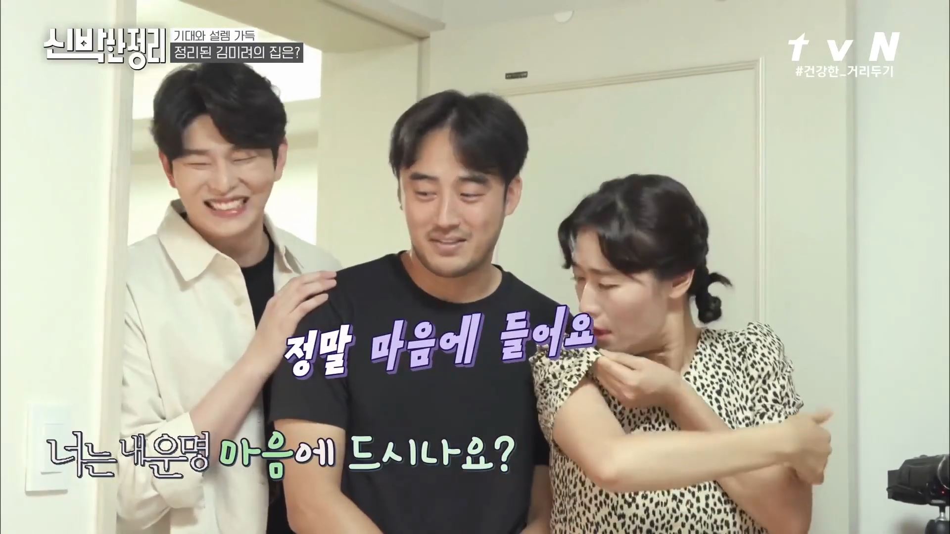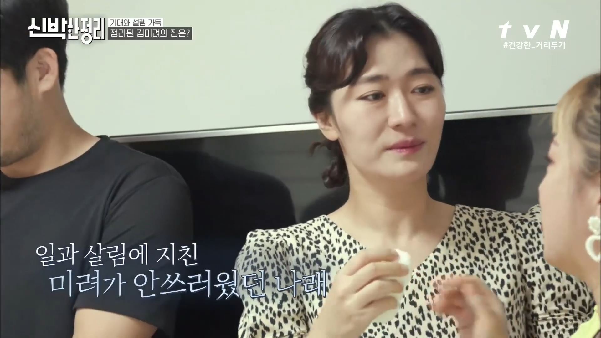 tvN '신박한 정리'에는 열 번째 의뢰인으로 김미려, 정성윤 부부가 출연했습니다. 이날 신애라와 박나래, 윤균상은 정주리의 강력 추천을 받고 김미려의 집을 정리하기로 했습니다. 정리에 앞서 세 사람은 정주리에게 전화를 걸어 김미려 집의 현재 상태(?)를 확인했습니다.