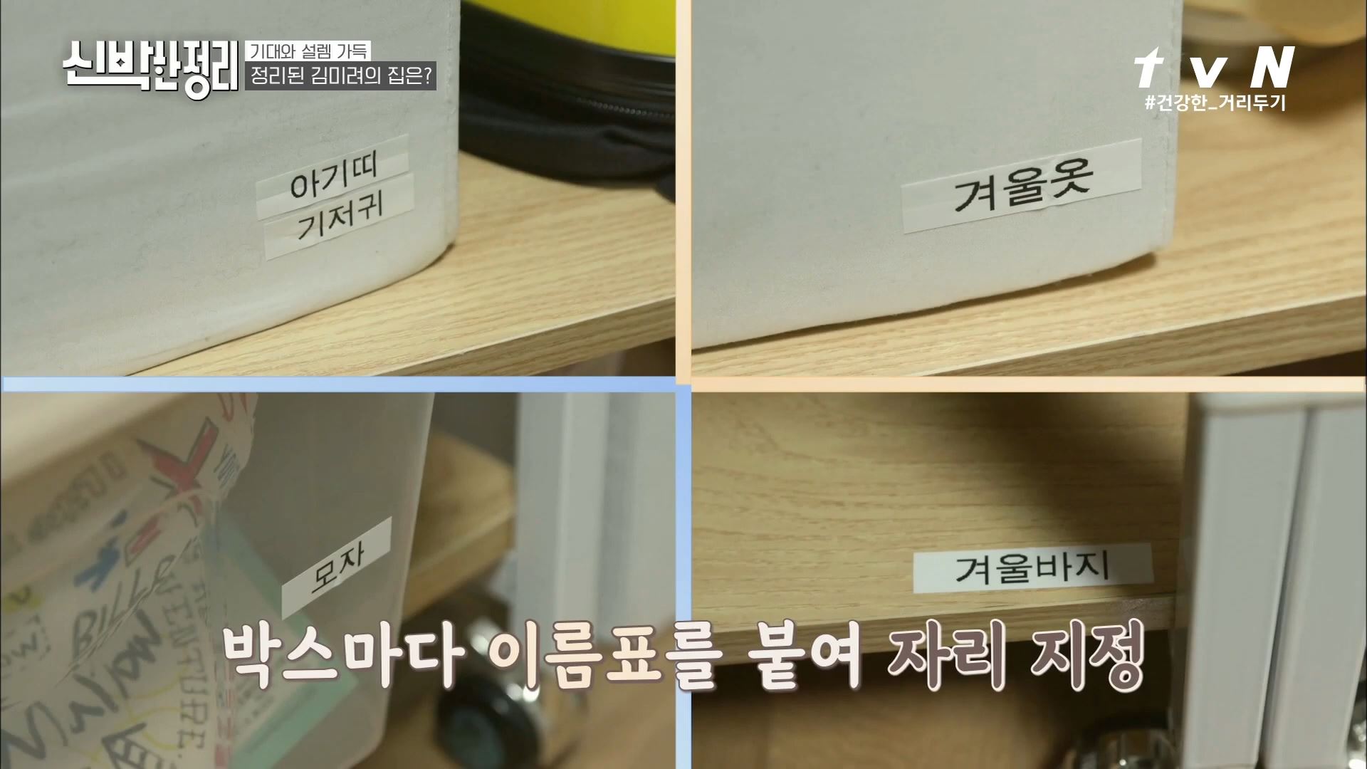 신박한 정리 공간 전문가, 이지영 전문가는 "물건의 주소를 정하세요"라며 물건이 자리해야 할 위치에 그 물건이 있는 것이 중요하다며, 특히 정리 하는 사람이 혼자가 아니기때문에 물건의 위치에 대한 약속을 지킬 것을 꿀팁으로 남겼습니다.