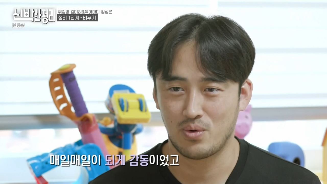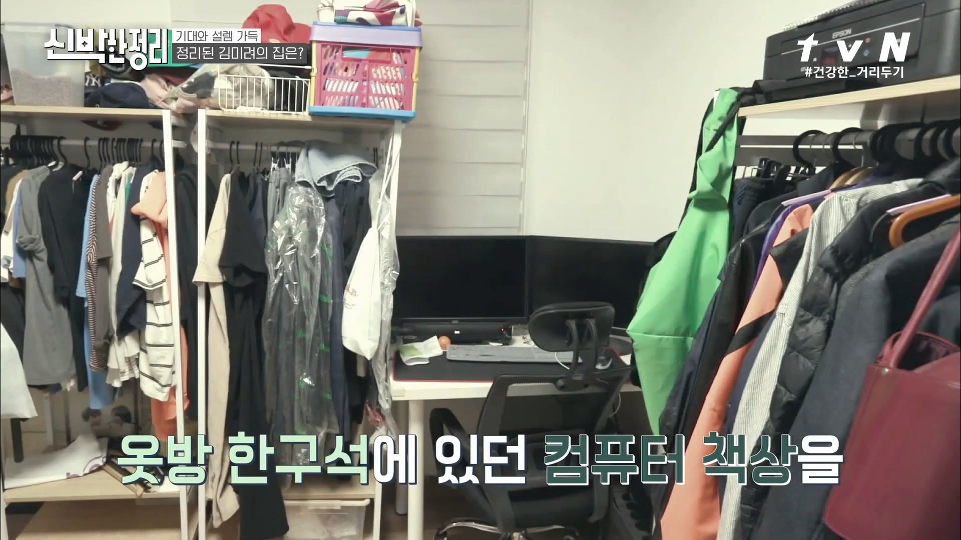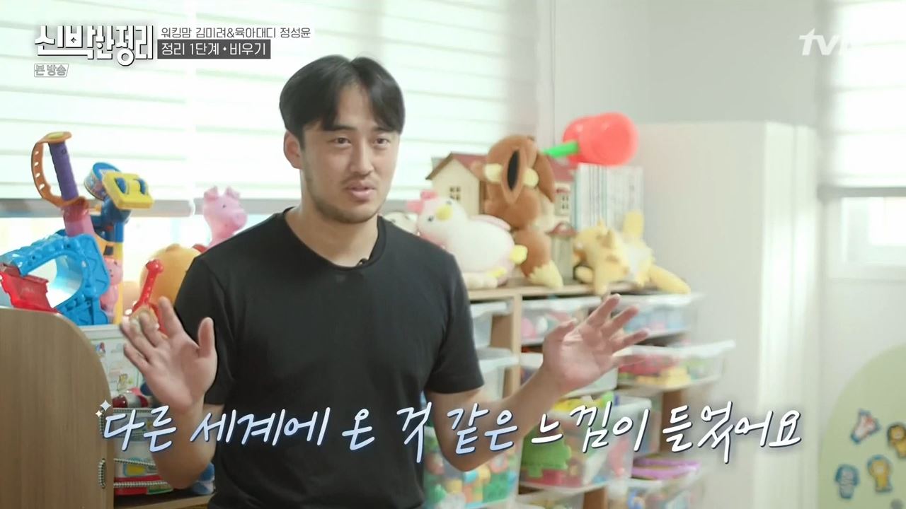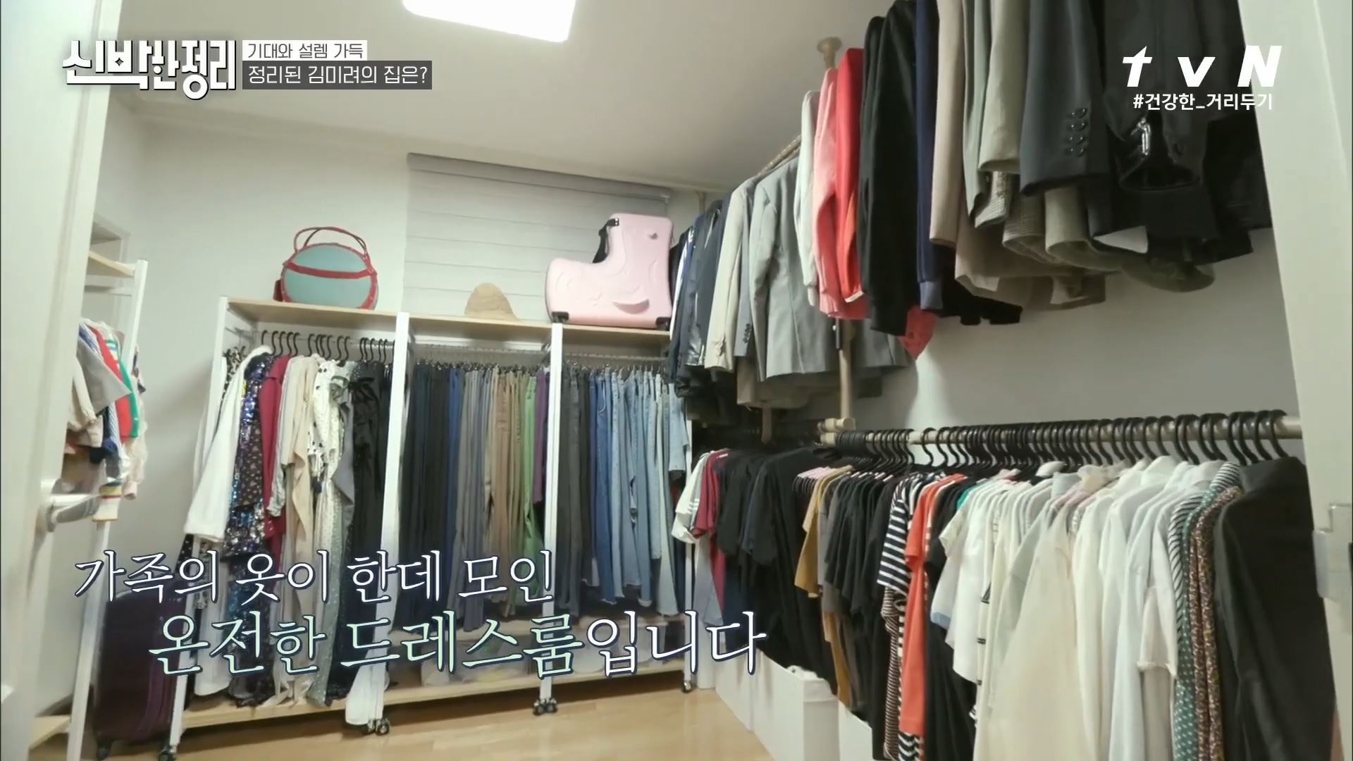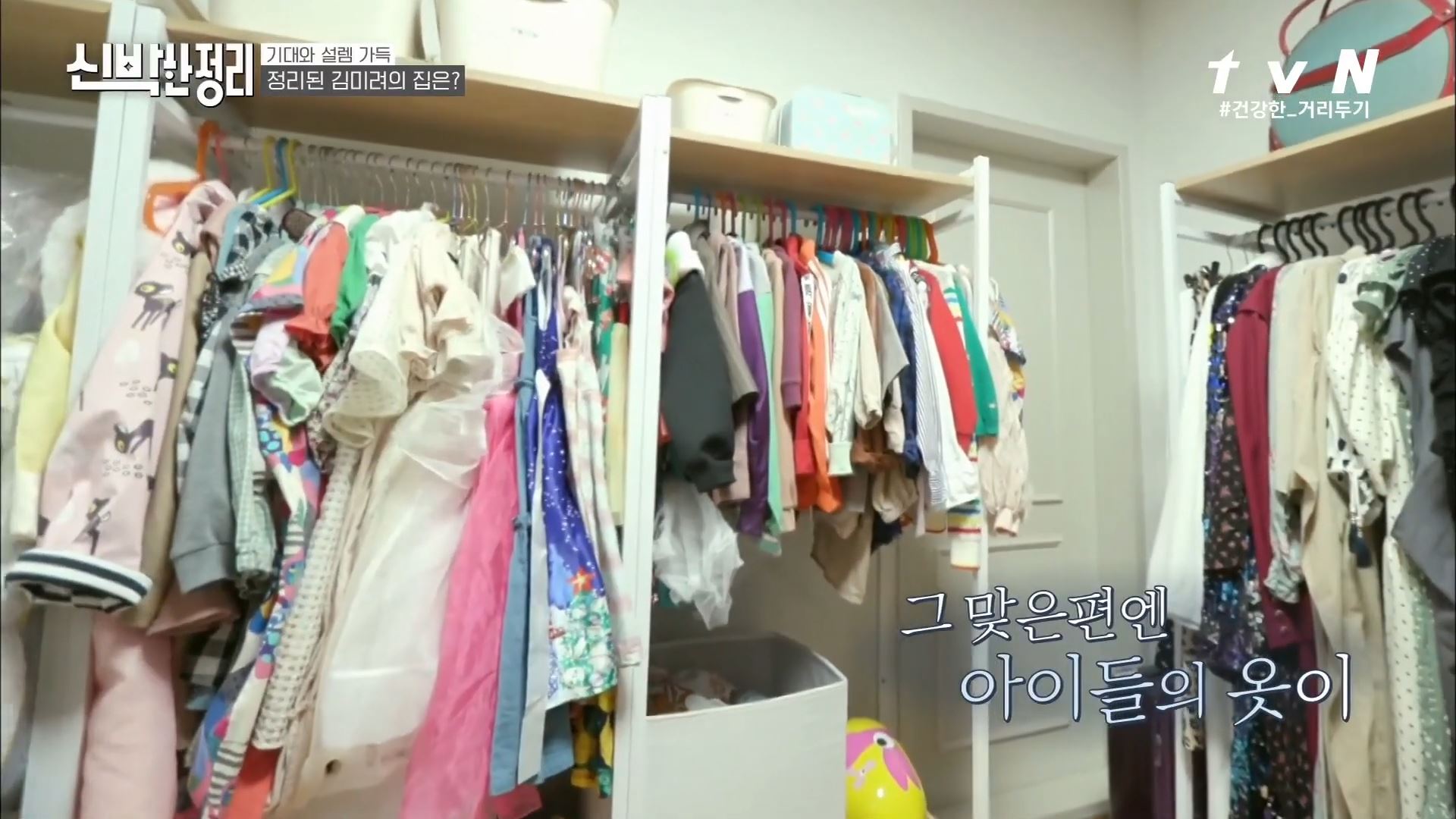 문을 열자마자 답답함이 느껴졌던 옷방은 큰 행거를 통해 깔끔히 옷들이 정리되었습니다. 곳곳에 퍼져있던 아이들의 옷도 함께 정리되었습니다. 정성윤은 "살려주셔서 감사하다"며 살림할 의욕을 높여준 '신박한 정리'에 감사함을 전했습니다.