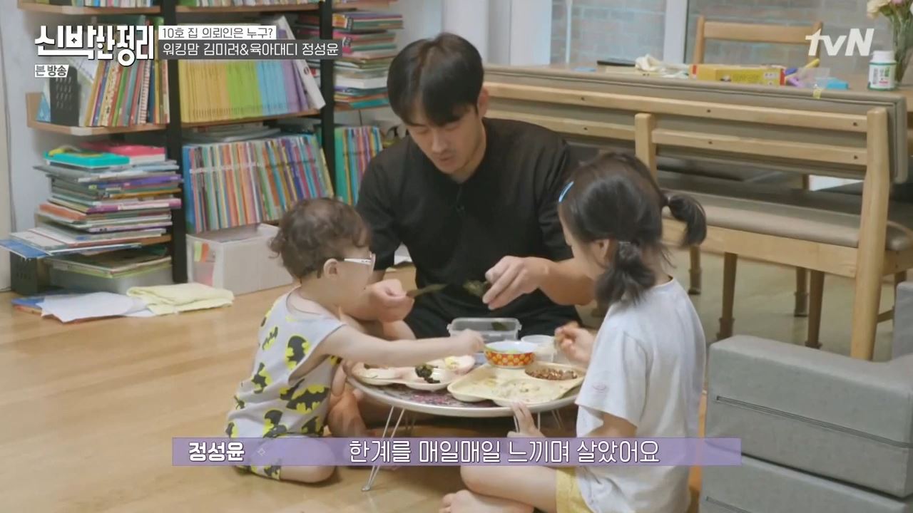 정성윤은 자신의 노력을 몰라주는 아내에게 서운할 때도 있지만, 몰래 눈물을 흘리며 힘들어하는 아내의 모습을 볼 때가 더 힘들다고 말해 안타까움을 자아냈습니다. 촬영 중간에도 아이들을 챙기느라 고군분투한 정성윤은 두 아이 모아, 이온에 대해 "(아이를 낳았을 때) 하루하루가 아주 감동적이었고, 너무 행복해서 다른 세계에 온 것 같았다! 육아하느라 너무 힘들고, 살림하느라 힘들어도 아이들이 커가고 행복해하는 모습 보면 힘이 나고 또 힘내서 살아갈 에너지가 생긴다"고 진심을 전했습니다.