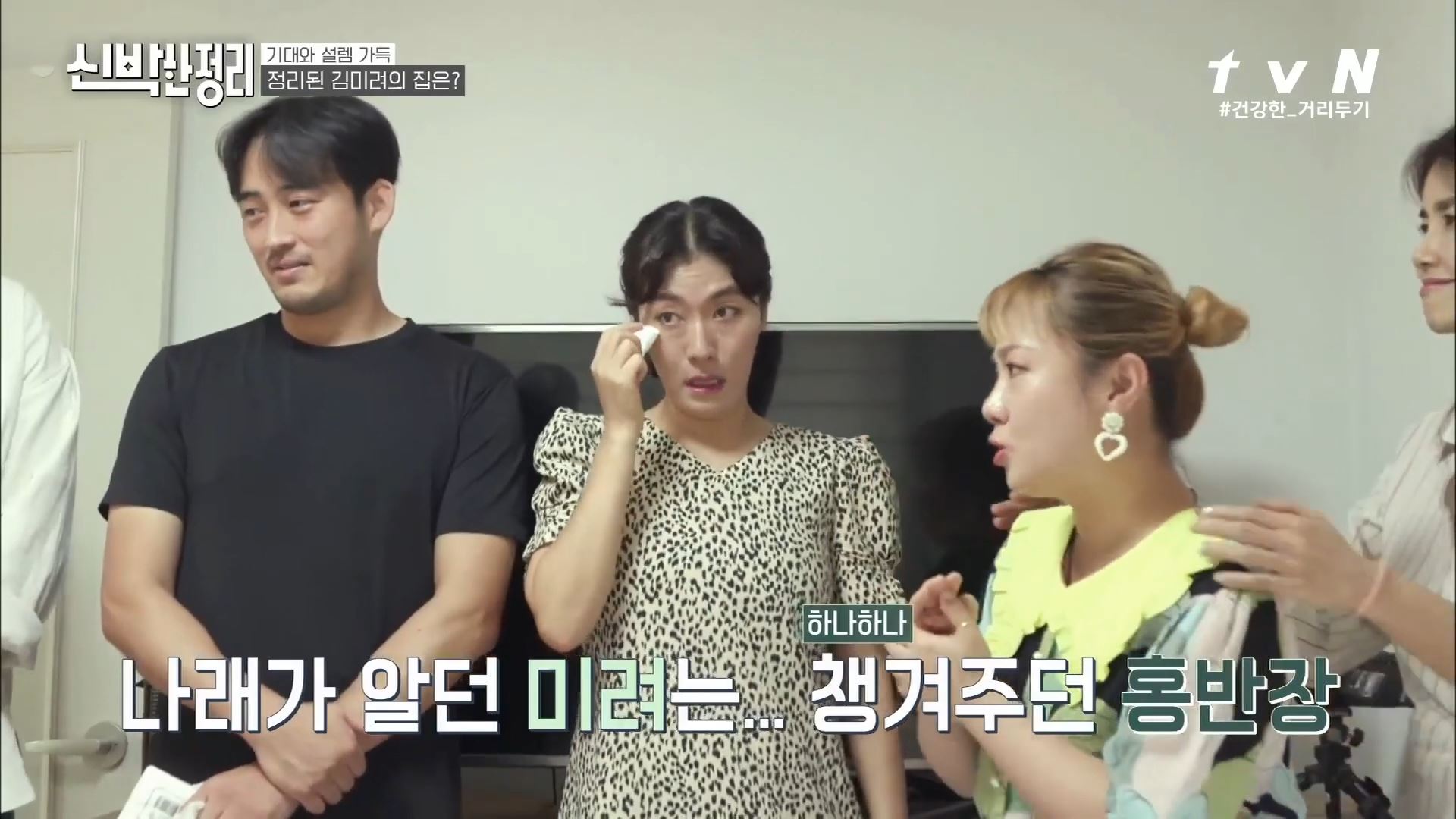 정성윤은 "하루하루 버틴다는 느낌으로 지내왔다! 오늘을 무사히 넘기자는 생각으로 지냈는데 우리한테 힐링이 되는 거 같다! 울컥하네요. 길게 육아를 한 건 아니지만 우리를 조금 잊고 살고 있다는 생각을 가끔 했다"며 눈시울을 붉혔습니다! 평소 김미려와 절친인 박나래는 "김미려가 원래 남들 다 챙겨주는 홍반장이었다! 근데 정리도 못 하고 사는 거 보니까 마음이 너무 아팠다! 원래 남들 챙겨주는 거 좋아하고 정리 잘하고 사는 사람인데 오히려 본인은 못 하고 지내는 거 보니까 진짜 열심히 힘들게 사는 것 같았다"며 눈물을 흘렸고, 김미려는 박나래와 포옹하며 고마움을 전했습니다.