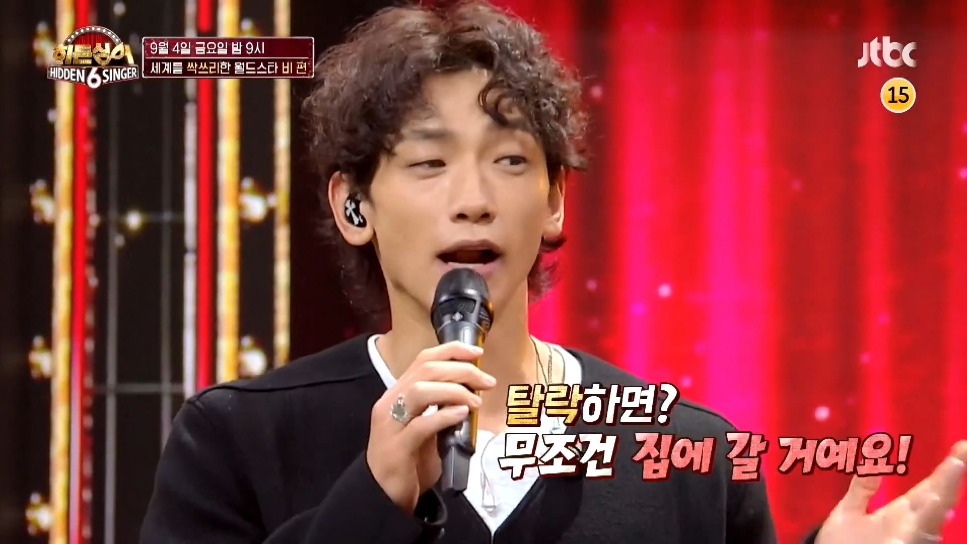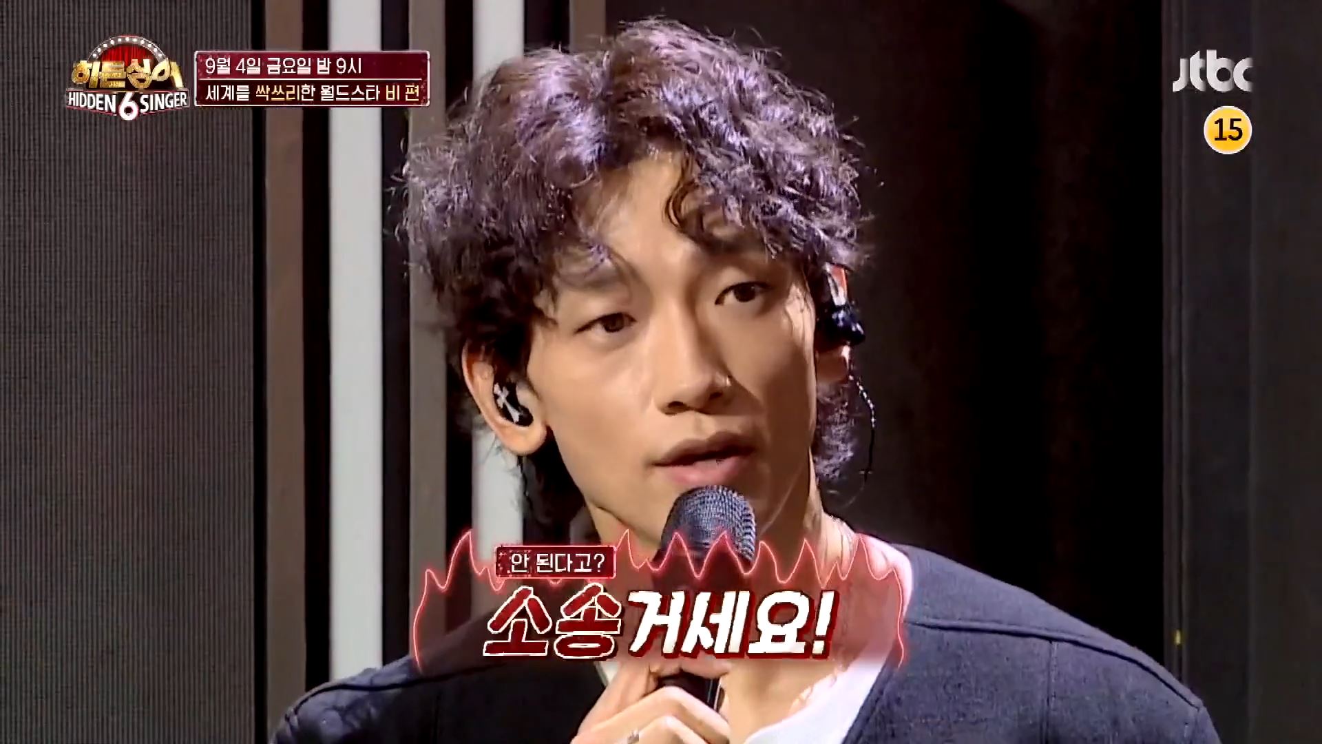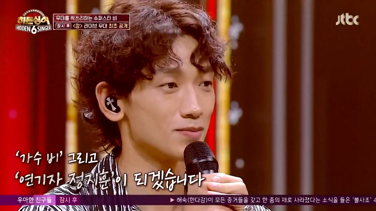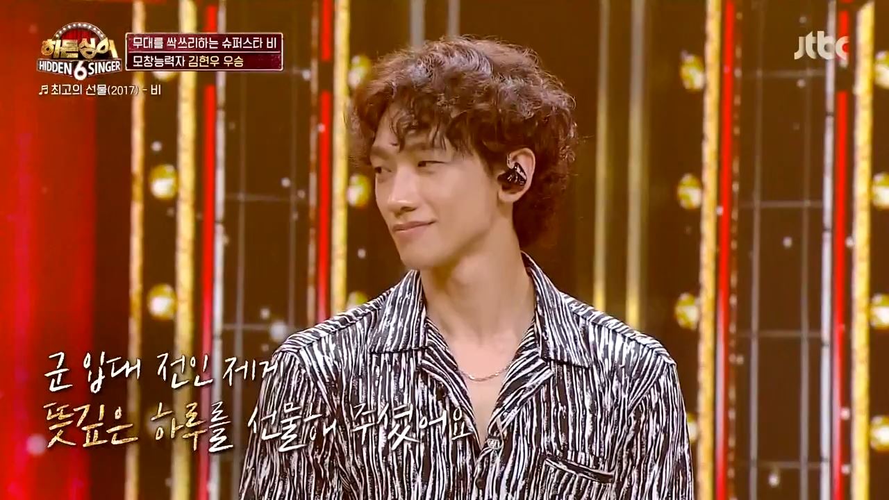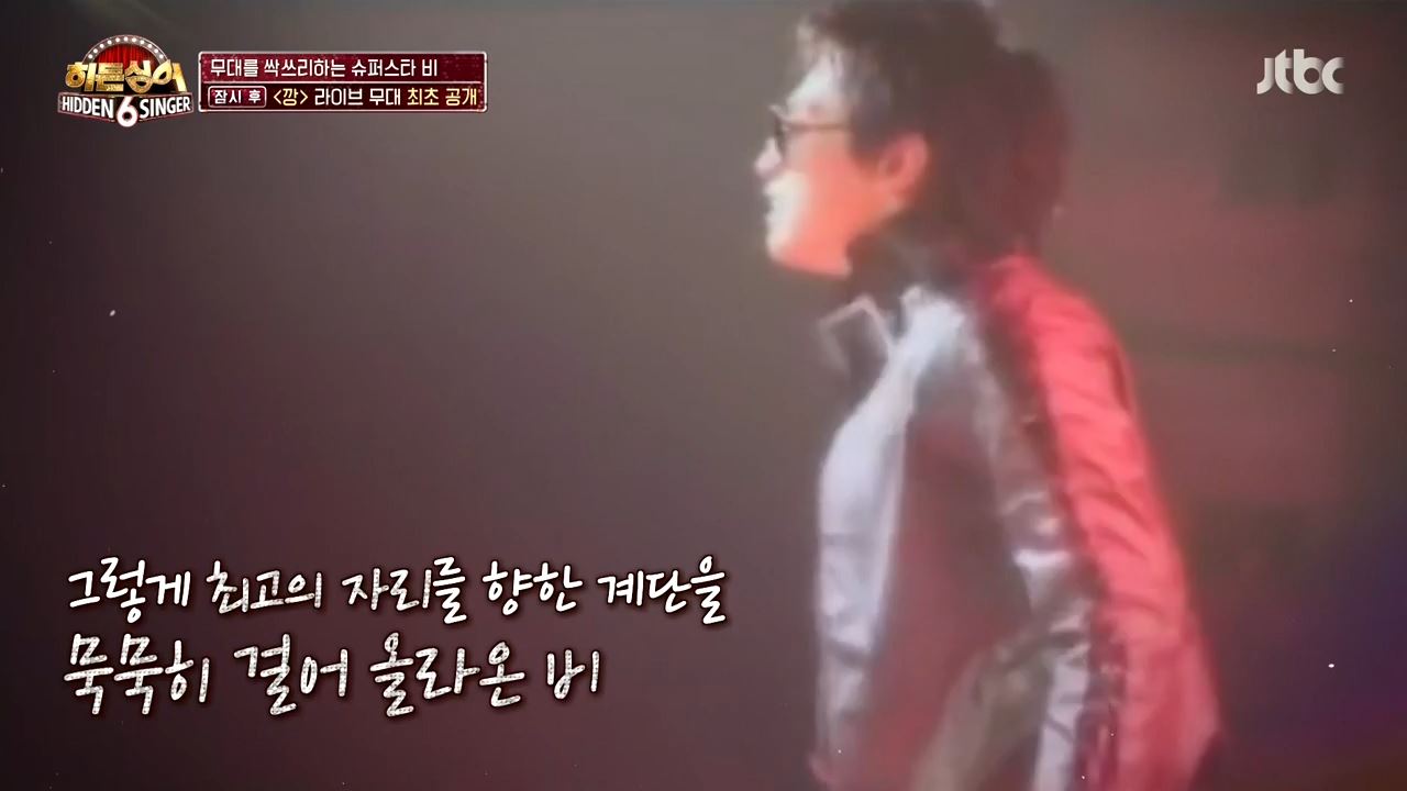 '히든싱어6'에 출연한 비는 "'히든싱어'에는 언젠가 한 번은 꼭 나가고 싶었습니다. 하지만 제 목소리는 태생이 공기 90%, 목소리 10%여서 저를 이기기가 쉽지 않으실 것"이라며 시작부터 자신만만함을 보였습니다. 이어 비는 진행 중인 MC 전현무마저 옆으로 밀어내며 무대 가운데로 가려고 시도하다 "제가 좀 '센터병'이 있어서..."라고 말해 웃음을 자아냈습니다.