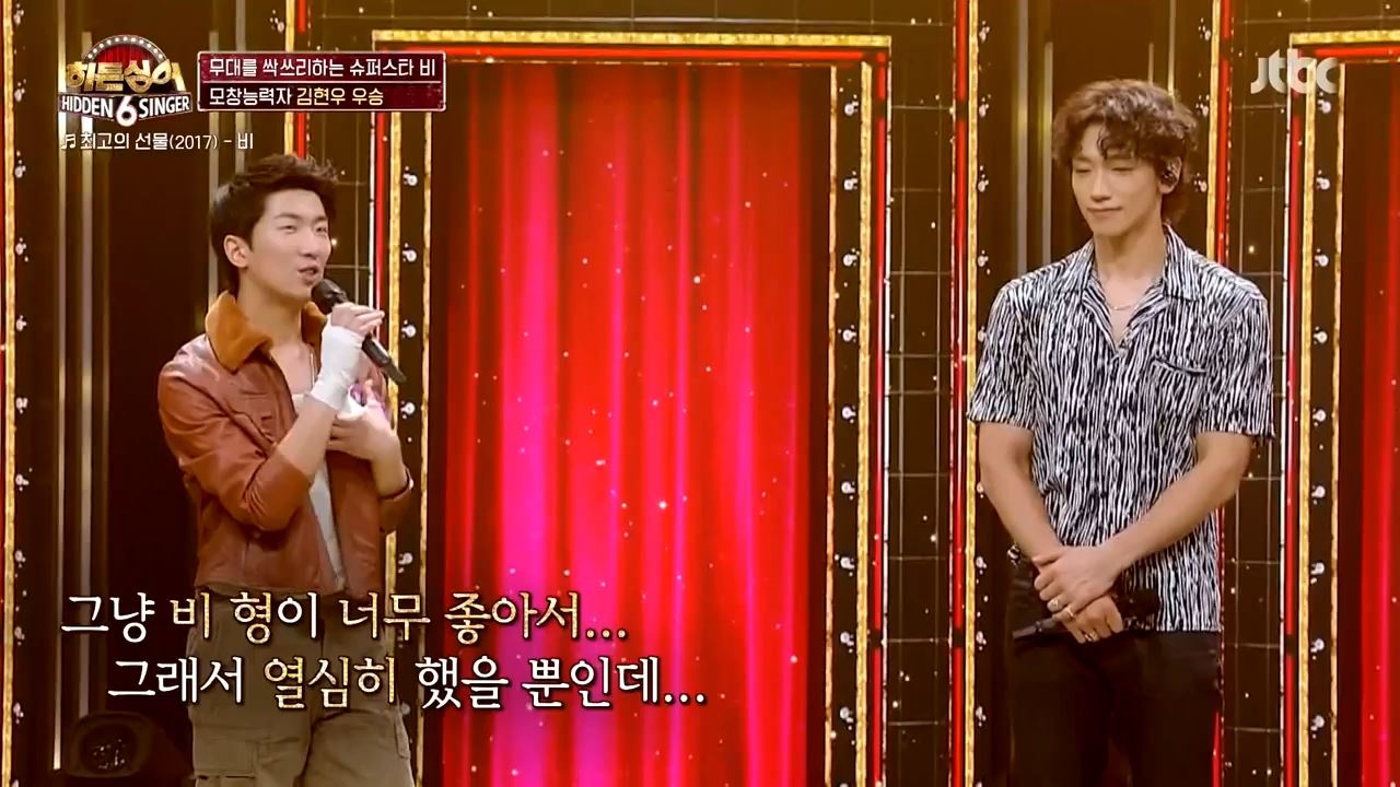 모창능력자 박민석이 3위를 차지한 가운데 이어 1위는 원조가수 비를 누르고 모창능력자 김현우가 최종 우승을 차지했답니다. 비는 안타깝게도 2위를 차지해 히든싱어6 최종 우승에 실패했죠! 비록 실패했지만 원조가수 비는 김현우를 포옹하며 진심으로 히든싱어6 최종 우승을 축하하는 마음을 전했습니다. 비는 “아까 저를 롤모델이라로 해주셨지만 모창능력자 여러분들도 저의 롤모델이다. 저도 제 자리에서 최선을 다해서 열심히 하는 가수이자 연기자가 되겠다“고 감동어린 소감을 전했습니다. 박준형도 찐친형 답게 비의 모든 모습을 감동스레 전하며 히든싱어6 원조가수 비 편은 끝났습니다.