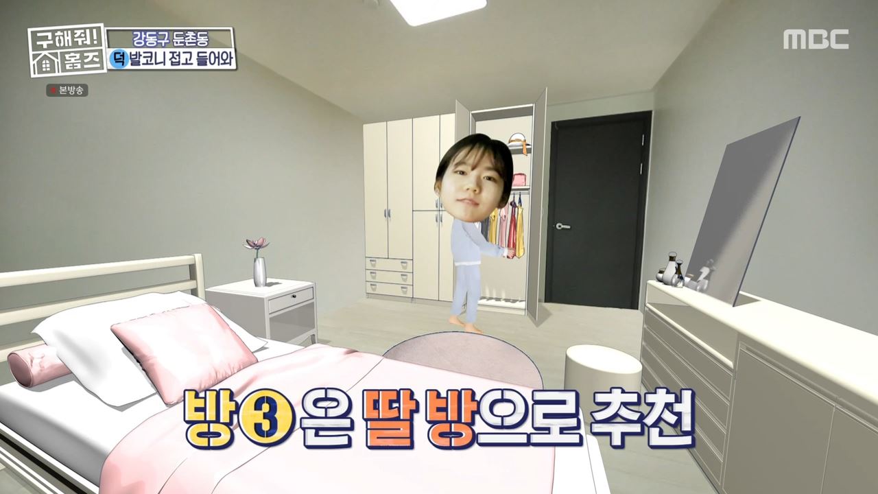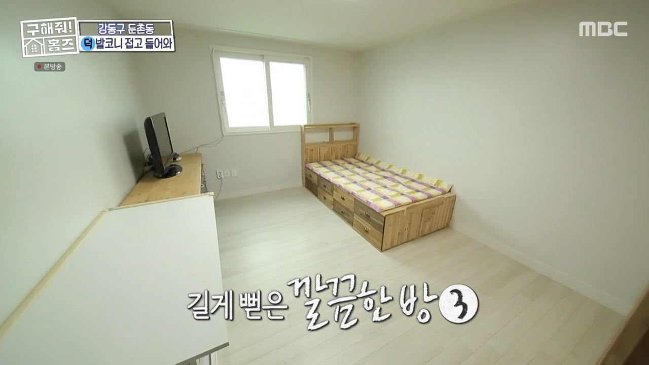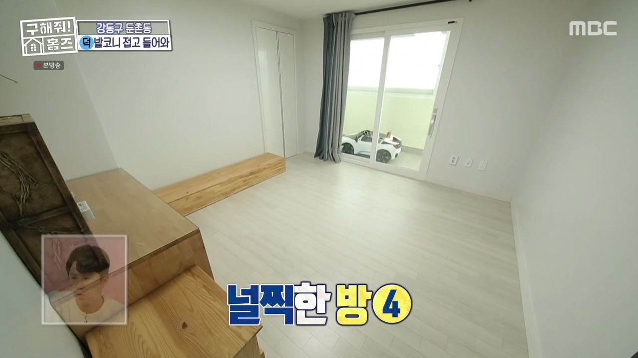 두 번째 방은 붙박이장이 시공되어 있었고 세 번째 방 역시 붙박이장이 시공된 길쭉한 방이었습니다. 맞은 편에는 발코니가 포함된 디자인의 네 번째 방이 있었습니다. 구해줘홈즈가 붐, 태민, 라비 세 사람이 서울시 강동구 둔촌등에서 찾은 이 매물의 매매가는 10억 원이었습니다.