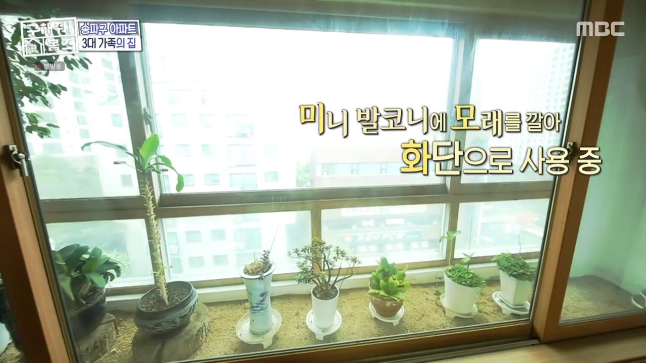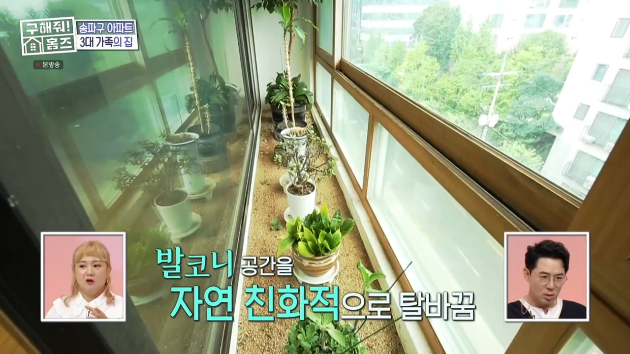 미니 발코니 공간은 자연친화적으로 화분을 만들었고 김충재는 발코니를 자연 정원 느낌의 인테리어 디자인을 중심으로 공간을 디자인 한 것 같다라고 말했죠.