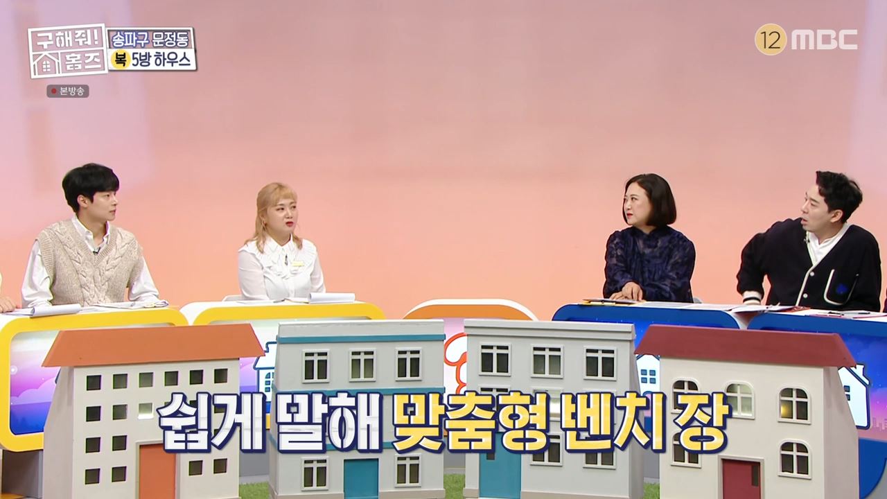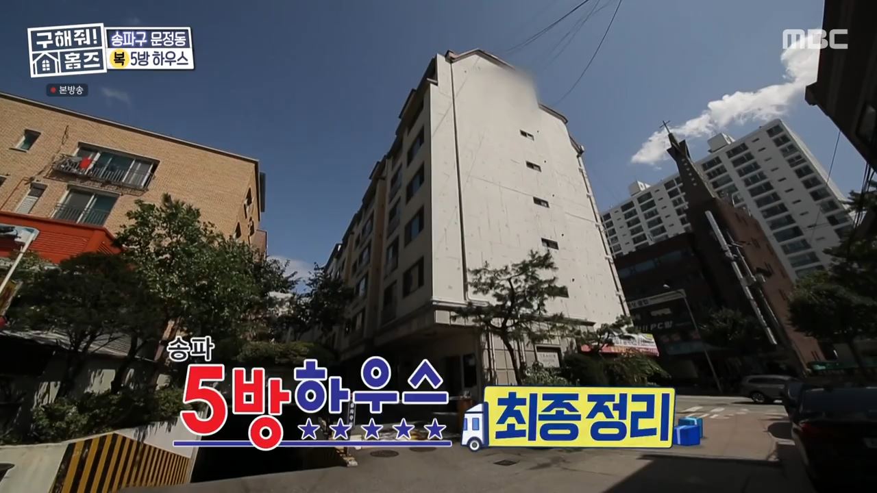 구해줘홈즈 박나래와 김충재는 서울시 송파구 문정동의 '5방 하우스' 방 5개 아파트로 향했습니다. 박나래는 "2003년에 준공된 오래된 아파트이긴 하지만 김충재님이 아파트 실내 인테리어 팁을 좀 주면 될 것 같다"고 이야기했습니다.