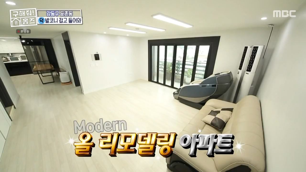 구해줘홈즈 붐, 태민, 라비 세 사람은 서울시 강동구 둔촌등의 '발코니 접고 들어와' 아파트를 공개했습니다. 아파트 외부 디자인은 다소 연식이 있어 보였지만 화초가 줄지어 있어 숲 속으로 들어가는 듯한 독특한 아파트 입구로 궁금증을 자아낸 이 집은 완벽한 내부 리모델링으로 놀라움을 안겼습니다. 복팀 역시 “아파트 현관문은 연식이 있어 새로 리모델링 해야하나 싶었는데! 실내 인테리어가 장난 아니다”라며 깜짝 놀랐습니다.