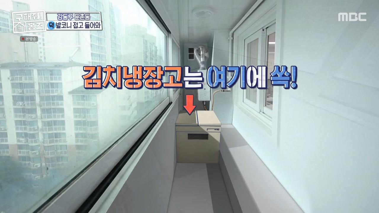 주방 구조가 넓게 나온 아파트라 대가족이 생활하기에 넉넉한 공간이었고 수납장 씽크대도 내부 인테리어 공간 자체가 크다보니 모두 넉넉했습니다. 주방 옆에는 6.5m 길이의 넓은 대형 발코니가 있었습니다. 박나래는 발코니를 보며 "여기서 김장을 릴레이로 만들 수 있다"고 말해 웃음을 자아냈습니다.