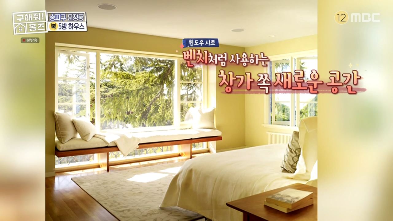 넓직한 발코니를 활용하기 위한 실내 인테리어 팁으로 윈도우시트가 나왔죠! 윈도우시트는 벤치처럼 사용하는 창가쪽 새로운 공간이라고 하며, 박나래가 이사간 용산 한남동 집도 그런 형태로 나왔었죠!