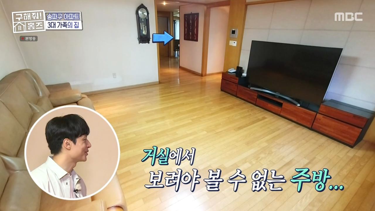 아파트 안으로 들어가자 박나래가 말한 것처럼 다소 오래된 느낌이 들어 실내 인테리어가 필요해 보였습니다. 하지만 거실이 상당히 넓어 아파트 구조가 상당히 잘 빠진 실내 디자인이었고 주방과의 거리도 멀었습니다. 구해줘홈즈 김충재는 충분히 내부 인테리어를 통해 송파구 문정동의 방 5개 아파트를 바꿀 수 있다라고 이야기했습니다. 아파트 거실 공간 자체가 워낙 크게 빠진 구조라서, 실내 인테리어 하기 나름으로 얼마든지 꾸밀 수 있는 곳이었답니다.