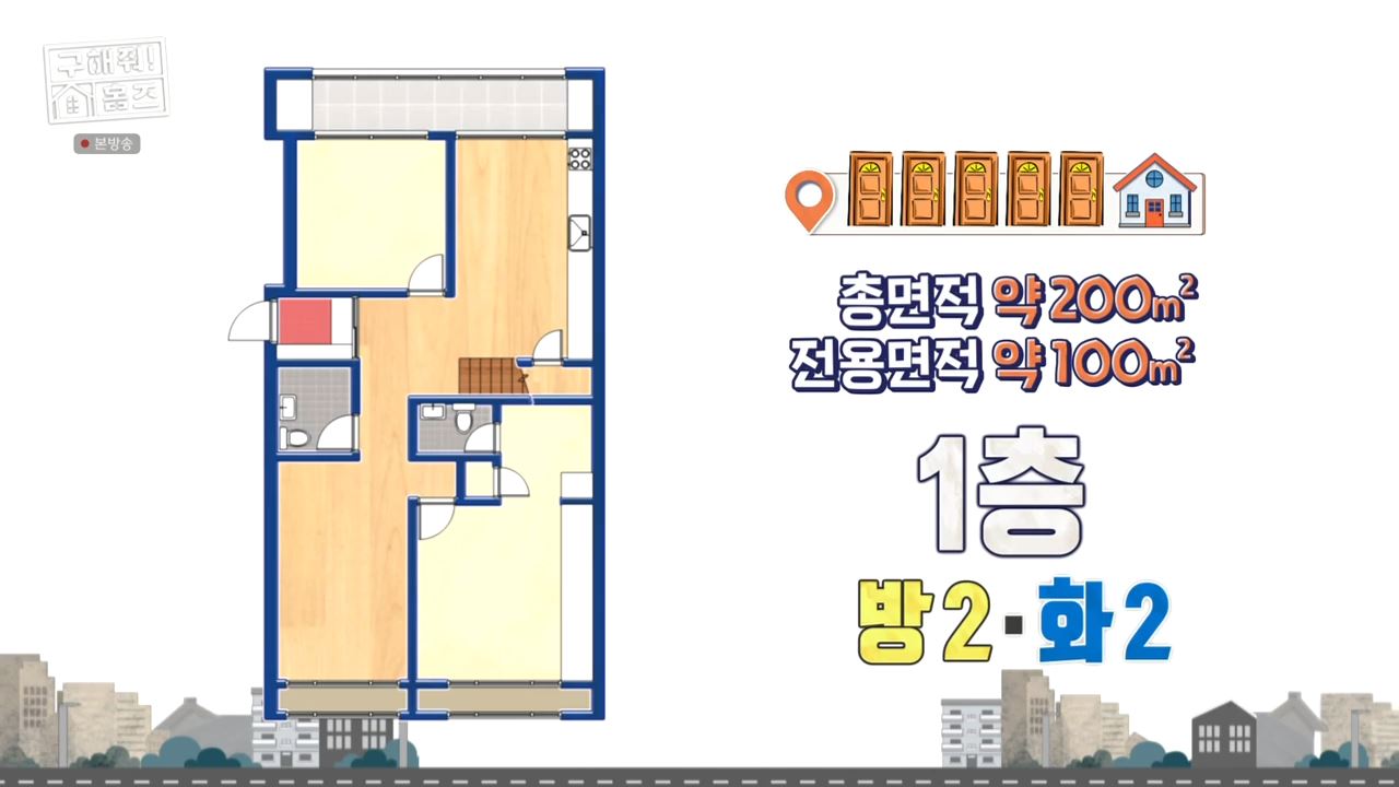 두 번째 방 역시 첫 번째 방 만큼이나 넓었습니다. 계단을 따라 올라간 2층에는면 4개의 문이 있었습니다. 박나래는 "완벽하게 세대가 분리되어 있습니다. 1층은 부모님과 할머님이 쓰시면 된다"고 이야기했습니다.