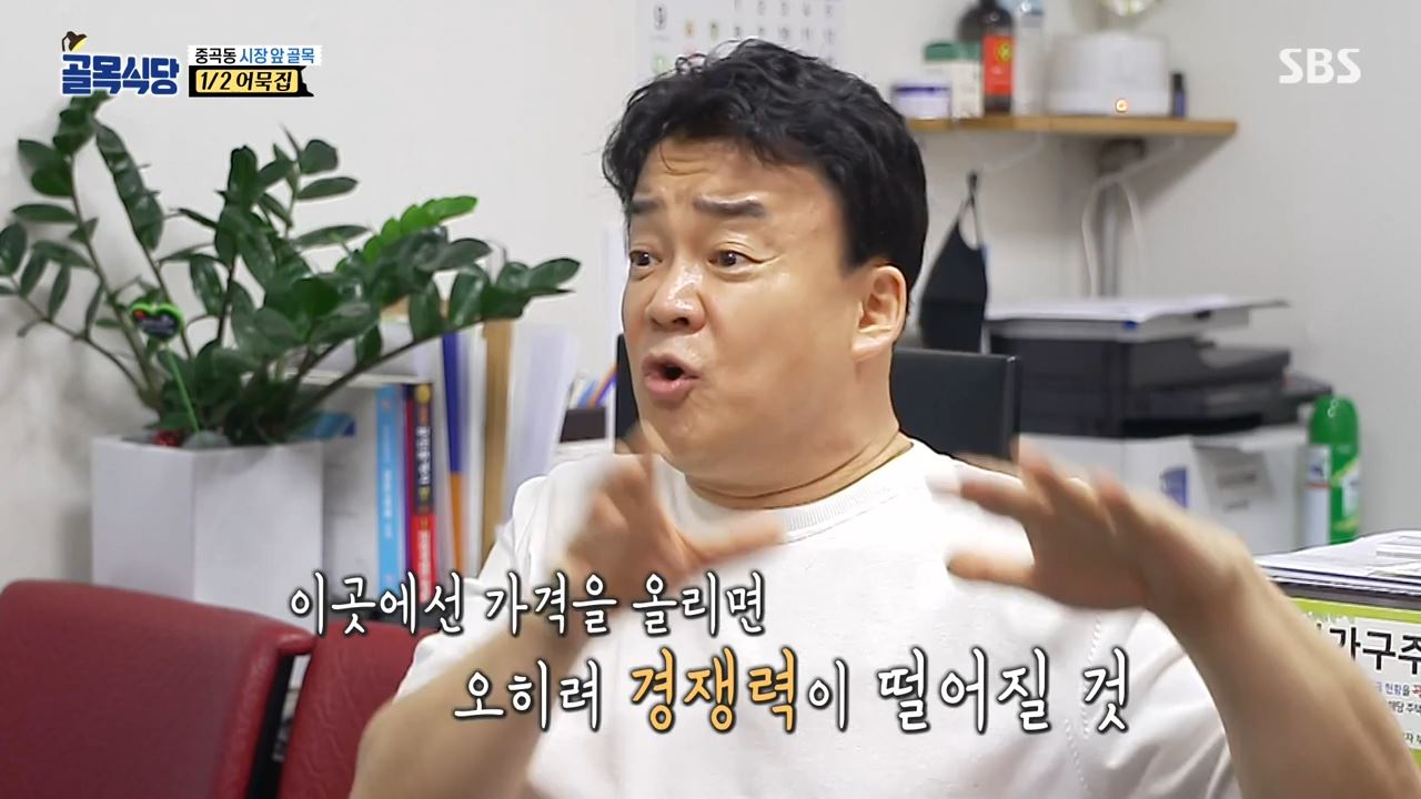 이어 “내가 너무 우물 안 개구리처럼 있었더라. 가까운 어묵집 어묵만 봐도 크고 맛있더라.”고 덧붙였습니다. 당황한 백종원은 "남이 비싸게 파니까 가격을 올리면 된다는게 잘못됐다는 것"이라고 설명했습니다. 이에 부산어묵 중곡동 어묵집 사장님은 "다른 집이 어묵 가격을 올려서 저도 올린다는 게 아니다. 고민스러운 게 뭐냐면 물가 상승으로 재료비가 올라 판매가 인상을 고심한 것"이라고 해명했습니다.