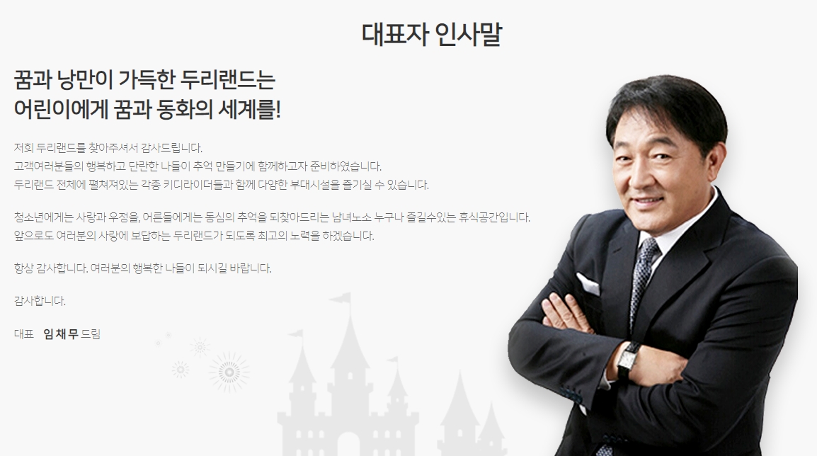 배우 임채무가 운영하는 놀이공원 테마파크 두리랜드입니다.